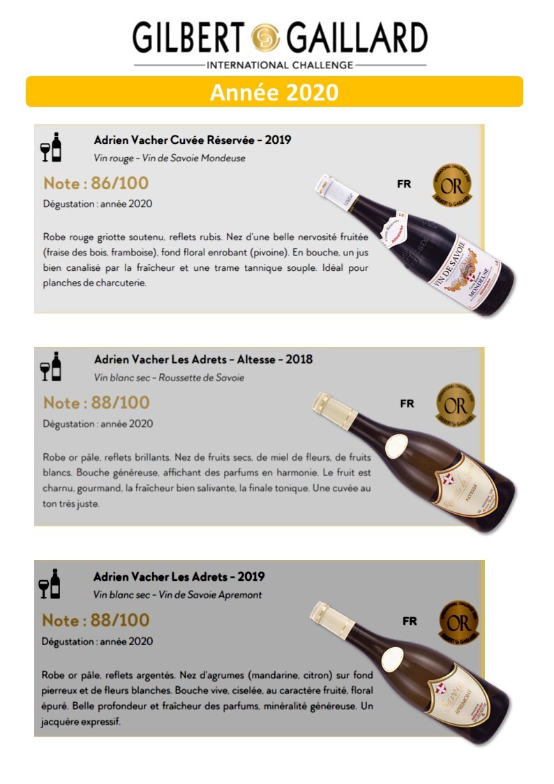 3 médailles d’OR décernées par Gilbert & Gaillard pour l’année 2020